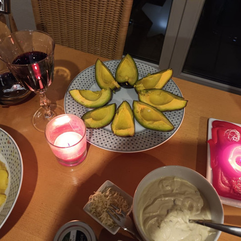 Im Laufe des Tages nehme ich die letzten Arbeiten an meinem finalen Blogeintrag des Jahres vor und veröffentliche ihn am frühen Abend. Später gibt es außer dem Kartoffelsalat auch noch Avocados mit Joghurtdip, gefüllte „Russische Eier“ und Toast mit Räucherlachs. Unsere Mutter hat dieses Festmahl vorbereitet, obwohl sie etwas erkältet ist. Wie schon vor einer Woche, schlage ich mir auch heute den Bauch voll.